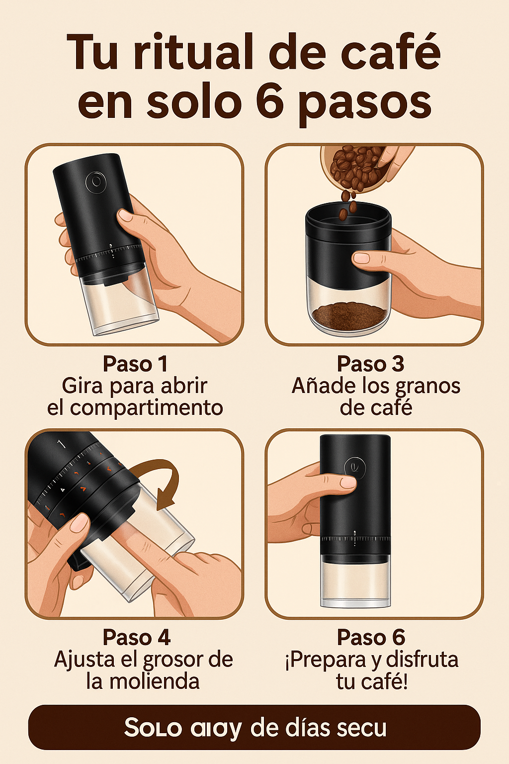 ✅ Muele hasta 20g de granos (¡una carga completa para 1-2 tazas!)