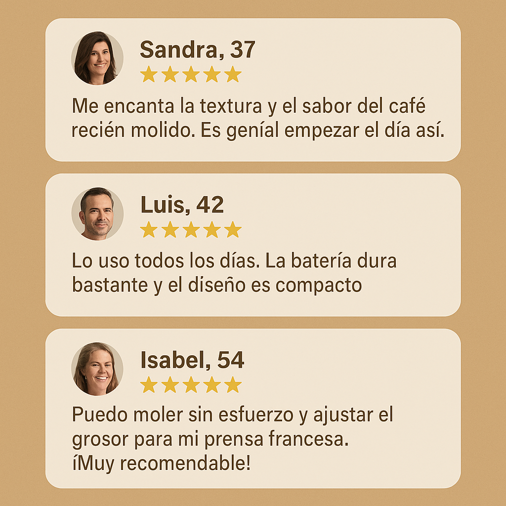 Puedo moler sin esfuerzo y ajustar el grosor para mi prensa francesa. ¡Muy recomendable!